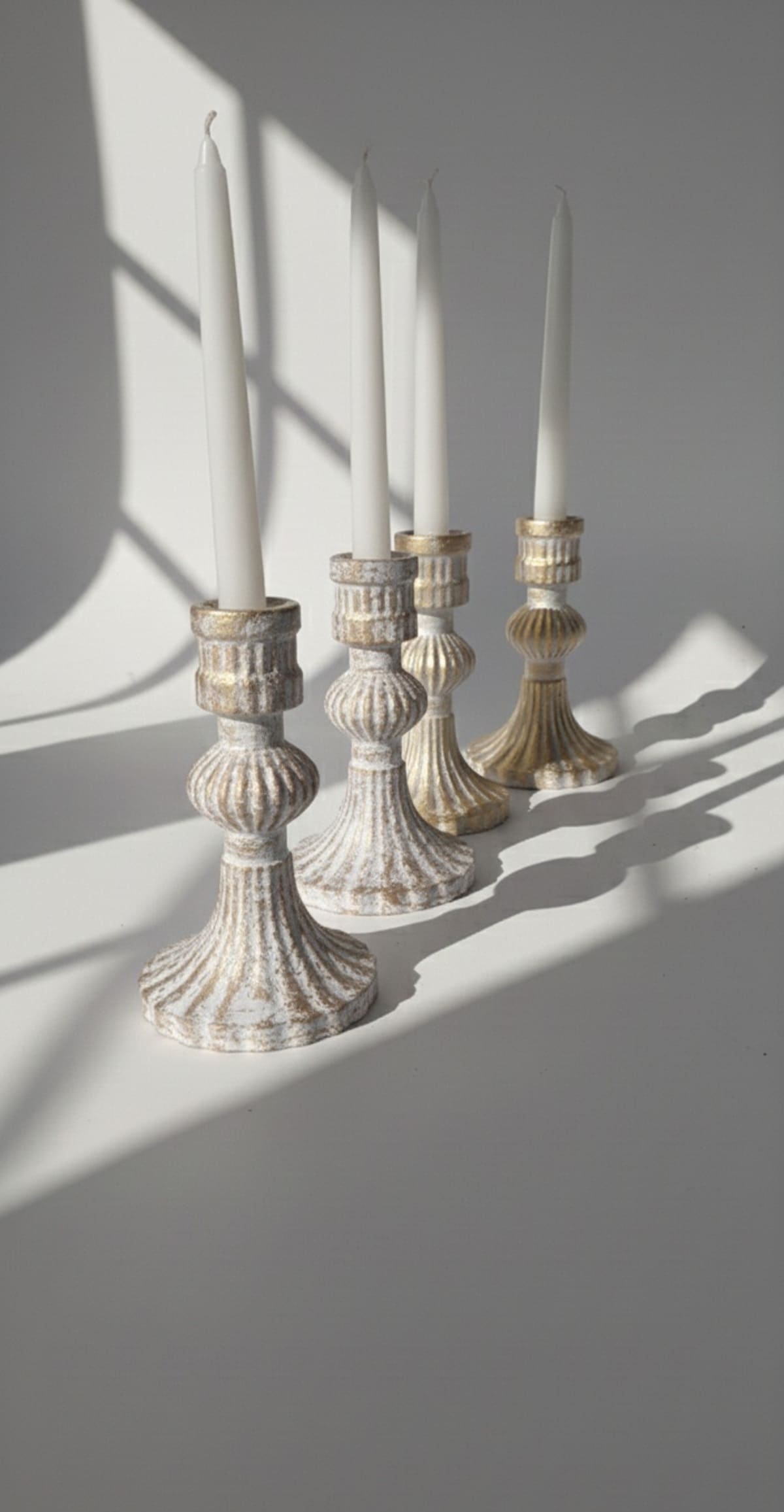 ست شمعدان سه عددی سنگ مصنوعی مدل افرا(طرح چوب مینیمال)
